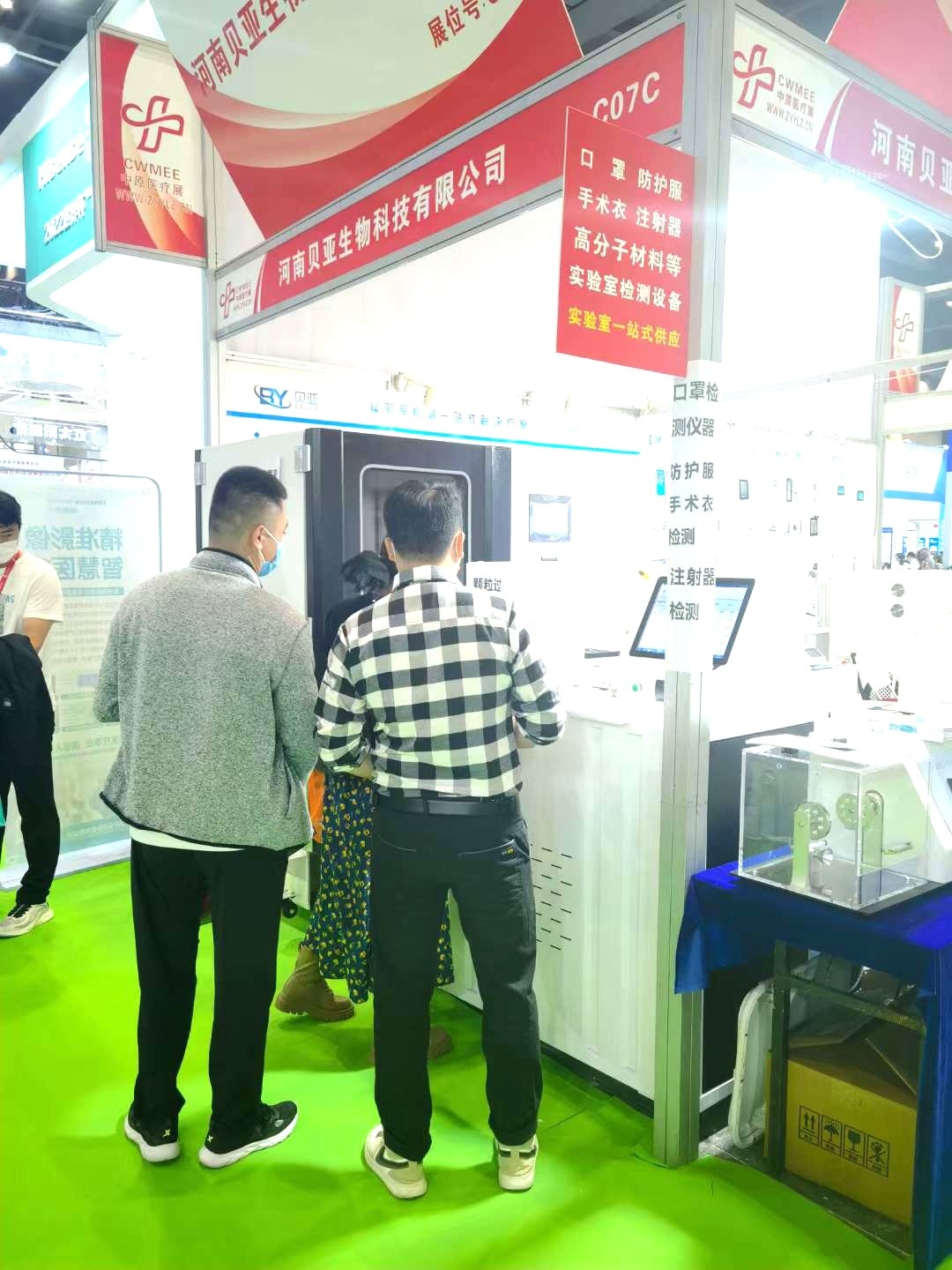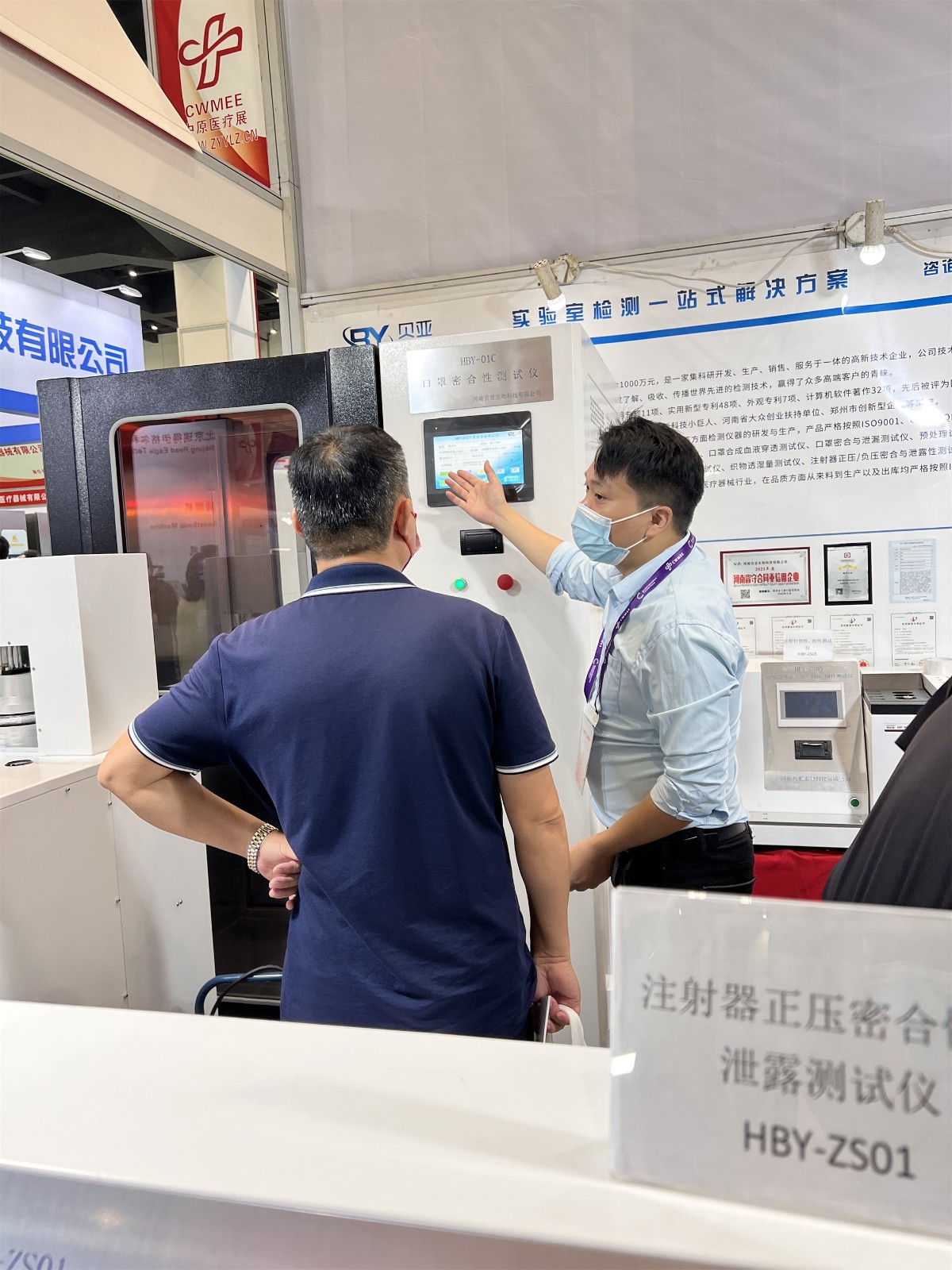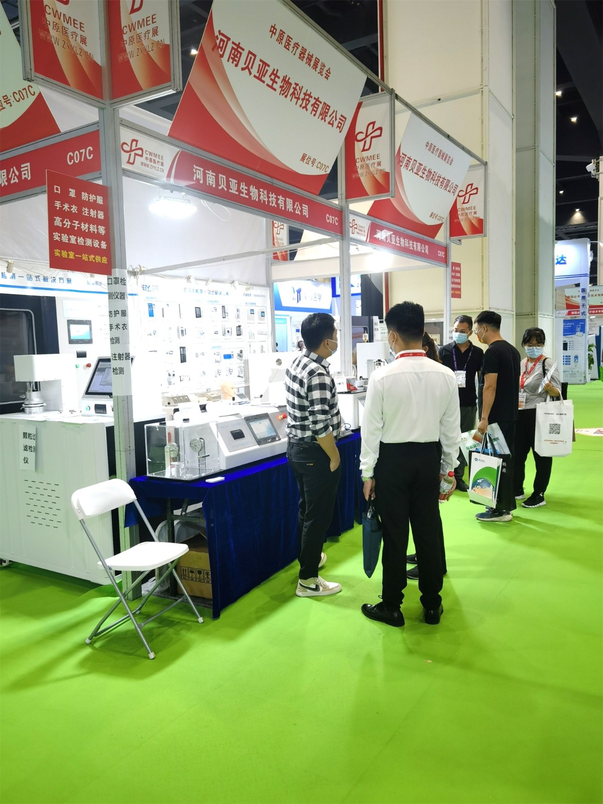 此次展會,河南貝亞生物科技有限公司攜眾多實驗室解決方案****展覽會,其中包含口罩檢測全套解決方案、防護服檢測全套解決方案、注射器檢測解決方案,吸引了眾多觀眾參觀了解,現(xiàn)場人氣**!